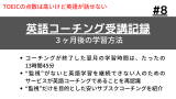 英語コーチングは高額なため、効果があるのか不安に感じている人も多いと思いますので、私自身の成長記録が少しでも参考になれば幸いです。
